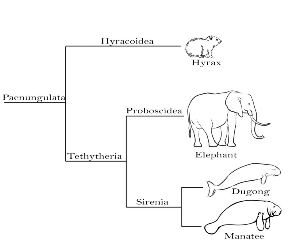 Elephants, hyraxes, dugongs, and manatees all share a common ancestor.